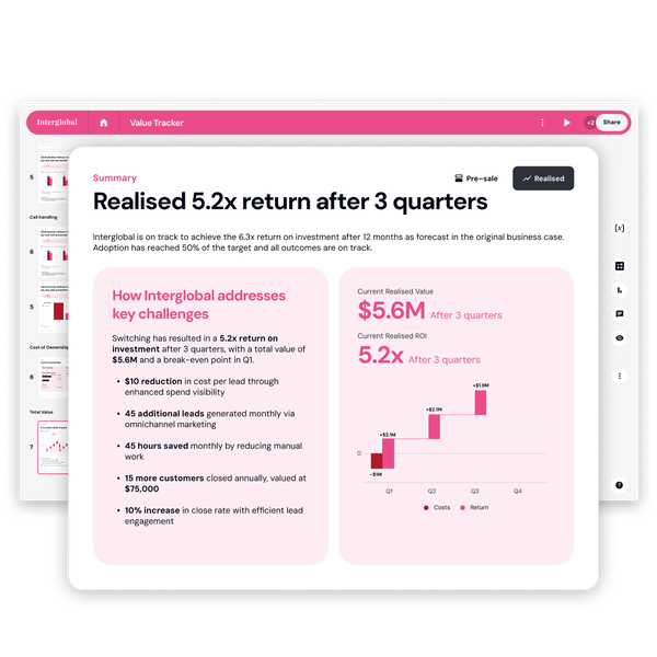 Renewals are no longer a forgone conclusion, and are more likely than not having to be treated as a net new opportunity. Losing a logo is far more painful than losing a first-time sale. With a compelling business case as a solid foundation, enabling you to track performance and demonstrate value provided vs the original promises made, you are far more likely to renew your contract.