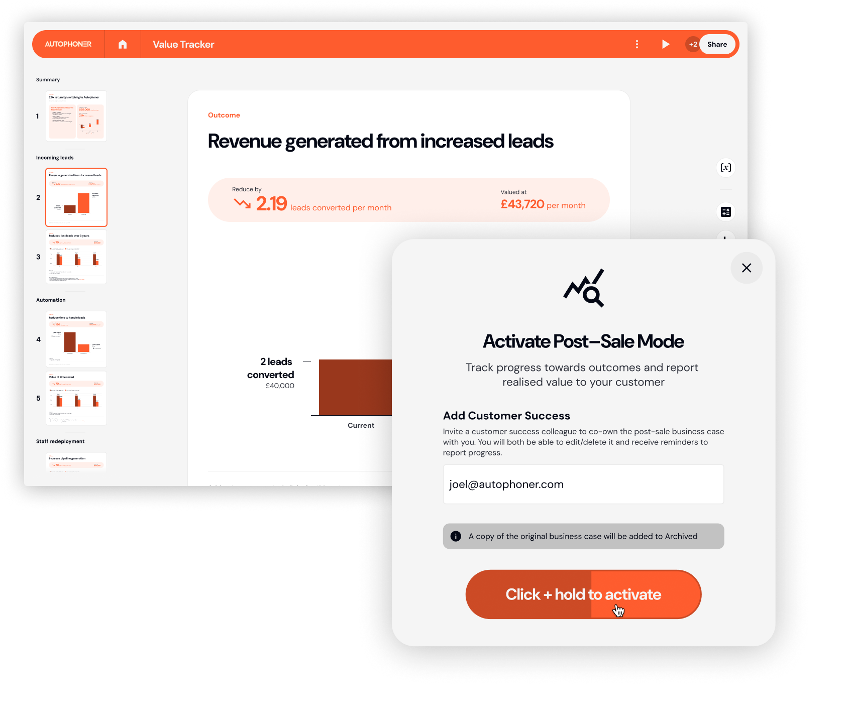 Imagine if from the moment you signed a new customer, your business case converted into a live value tracker.